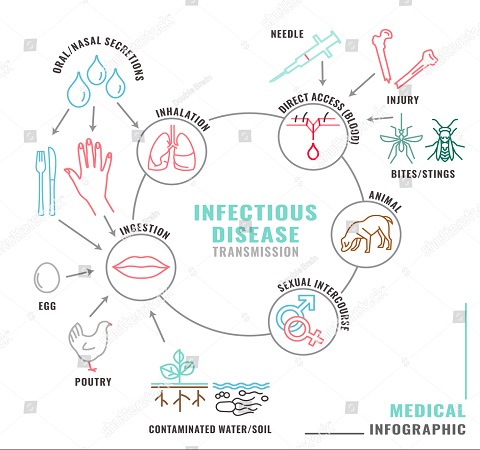Infectious diseases are illnesses caused by pathogenic microorganisms such as bacteria, viruses, fungi, or parasites. These diseases can spread directly or indirectly from one person to another through contact, air, water, food, or vectors like mosquitoes. Examples include Tuberculosis, COVID-19, and Malaria. They are often preventable through vaccination, hygiene, sanitation, and infection control measures, and many can be treated with antimicrobial medications.